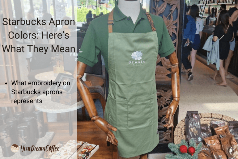 Below, I’ll go over the apron colors you can expect to see when you’re going out for a cup of joe at Starbucks: