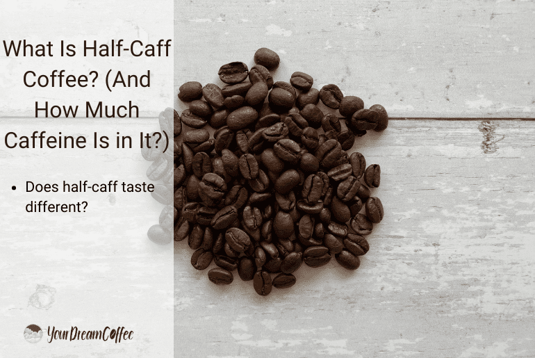 If you’re wondering what half-caff coffee is, it’s simply a 50/50 blend of caffeinated and decaffeinated coffee.