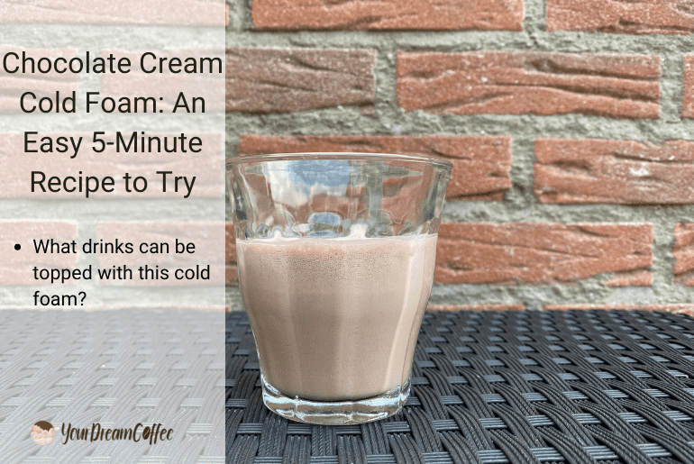 Chocolate cream cold foam is a cold foam made with low-fat milk, heavy cream, vanilla syrup, and cocoa powder. It has a chocolate flavor and a creamy texture.