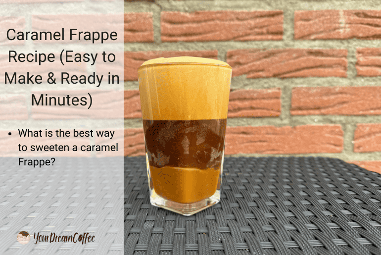 As I’ve mentioned above, a caramel Frappe is a cold and refreshing coffee drink that uses instant coffee, sugar, milk, ice, and caramel sauce. You can top this with whipped cream to make it even more decadent.