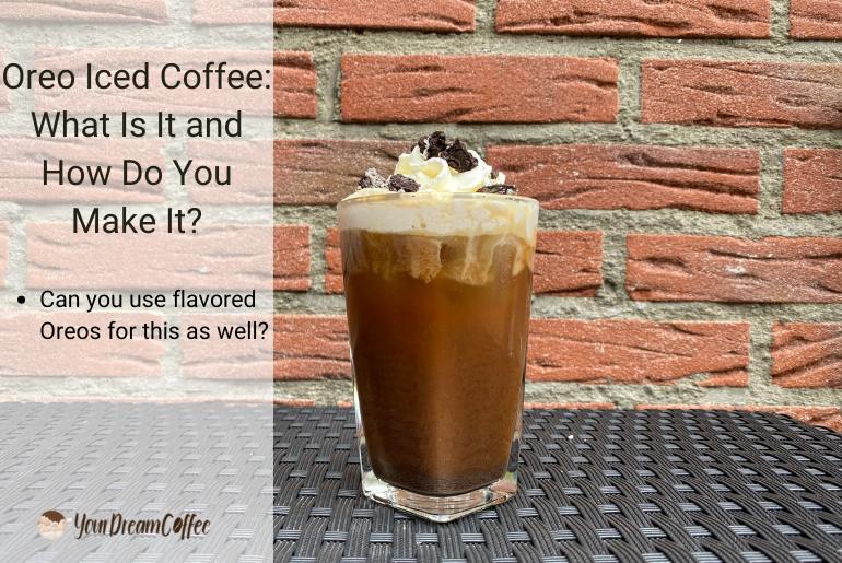 Oreo iced coffee is a coffee beverage made by blending coffee and Oreo cookies. It’s then served over ice with a whipped cream topping. It gets its name from the Oreo cookies that are used to flavor it.